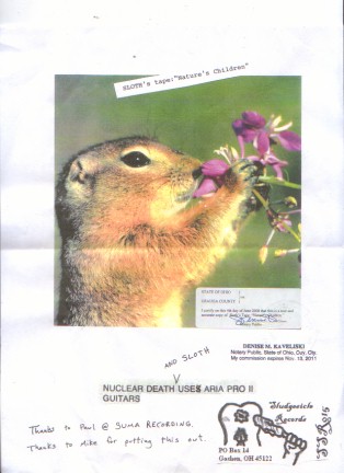SLOTHはオハイオ集メントア在住のDom Kaveliskiのプロジェクト。90年代半ばぐらいまではTHE SAINTS OF PAINあるいはEXPLODERと名乗っていました。